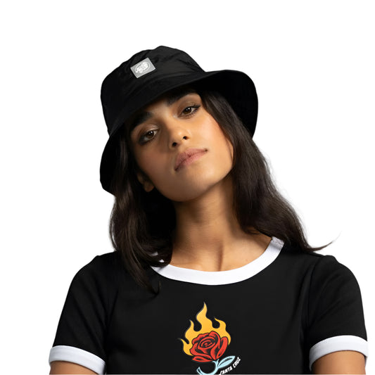Santa Cruz Womens Lucky Rose Ringer T-Shirt - Black White